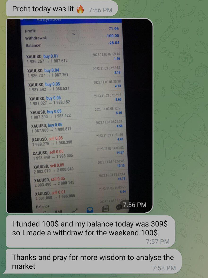 👇This is chichi from Abuja, who made over $7000 with my signals as she is also planing on getting a $100k evaluation account after being wowed by the quality of our premium signals in our ViP elite circle.